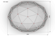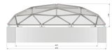 Dome length 4,5m/14,7ft. Width 11,4m/6,6ft. Height 1,1m/3,6ft. (without elevation).