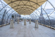 Durable steel TUBE frame with tent roof withstands any climate and weather. Spacey Tunnel Pavilion with stainless steel parts and screws is completely anti-corrosive.