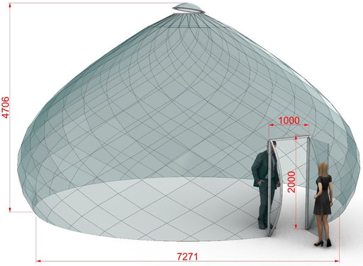 Luxury Aura Zome Dome™ Mosquito/Dust PROOF – 7m (22ft) Frameless Geodesic Dome Structure Product Specifications: Diameter: 7 m (22 ft) Height: 4...