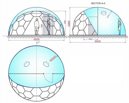 Ø6m H3m Luxury Aura Dome™ mit Glastür