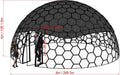 Kuppeldurchmesser 8m/26,2ft. Höhe 4,5m/ 12,6ft. Innenraum Boden Bereich 50m2/540,8sqft. Glas Tür h2000x932mm/78,7x36,7inch . Solar angetrieben Fenster 2 Stk. Verpackung 2 Euro Paletten.