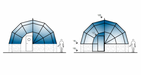 Questi sono edificio permanente. La cupola di vetro isolata durerà per oltre 25 anni. Busta di vetro isolante progettata su misura per estrarre l'umidità dalla busta stessa. Le costruzioni a cupola sono calcolate per resistere a un carico di neve fino a 1,6 kNe carico del vento fino a 34 m/s. Se hai bisogno di una maggiore resistenza al carico, chiedi consiglio.
